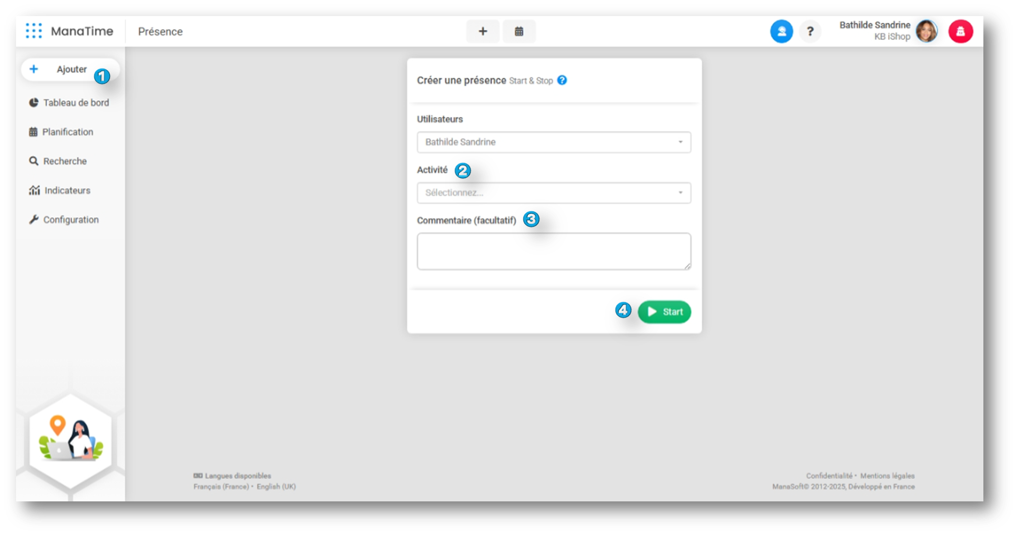 - Dirigez-vous dans le module "Présence" > Ajouter.