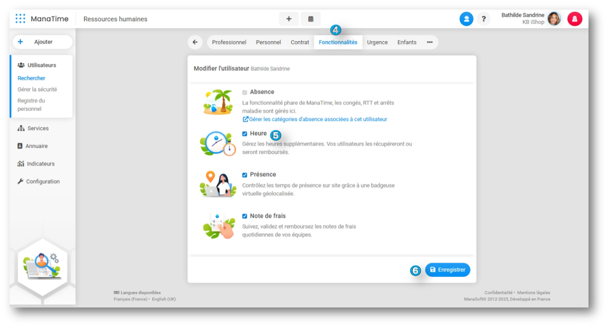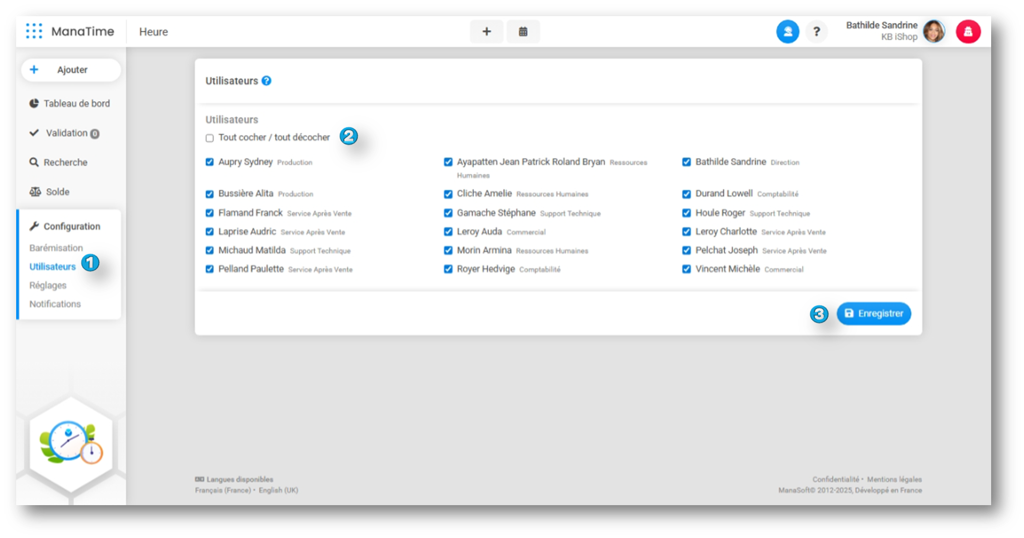 Sur ManaTime, il est tout à fait possible d'activer et de désactiver un ou plusieurs utilisateurs pour le module "Heure".