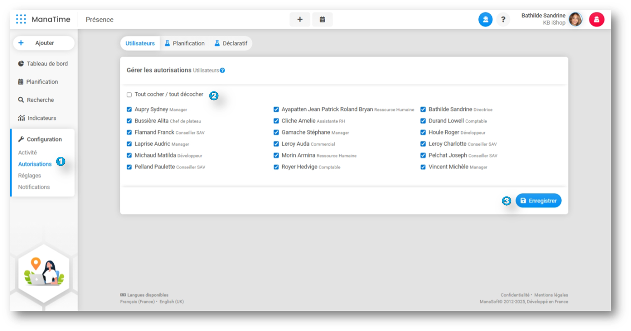 Sur ManaTime, il est tout à fait possible d'activer et de désactiver un ou plusieurs utilisateurs pour le module "Présence".