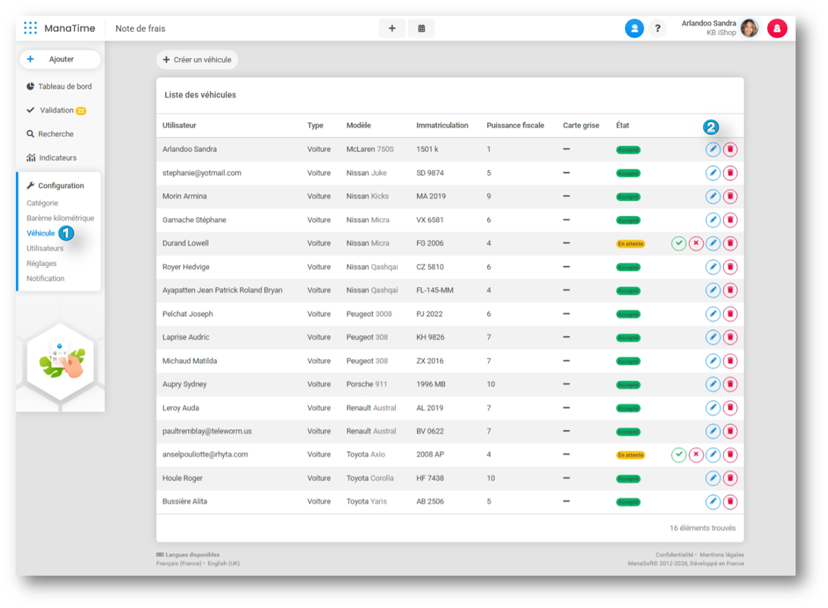 Sur ManaTime, vous avez la possibilité d'ajouter une carte grise à un ou plusieurs véhicules !