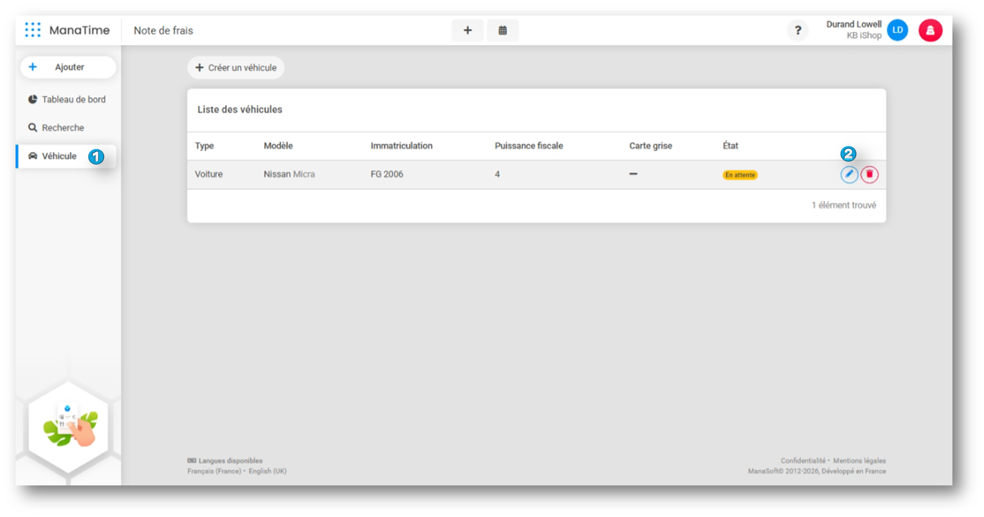 - Dirigez-vous dans le module Note de frais > Véhicule