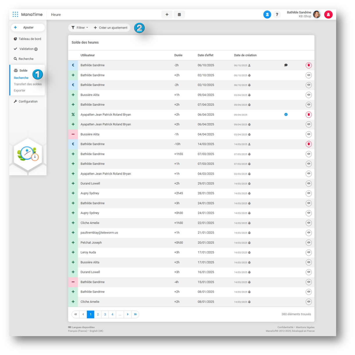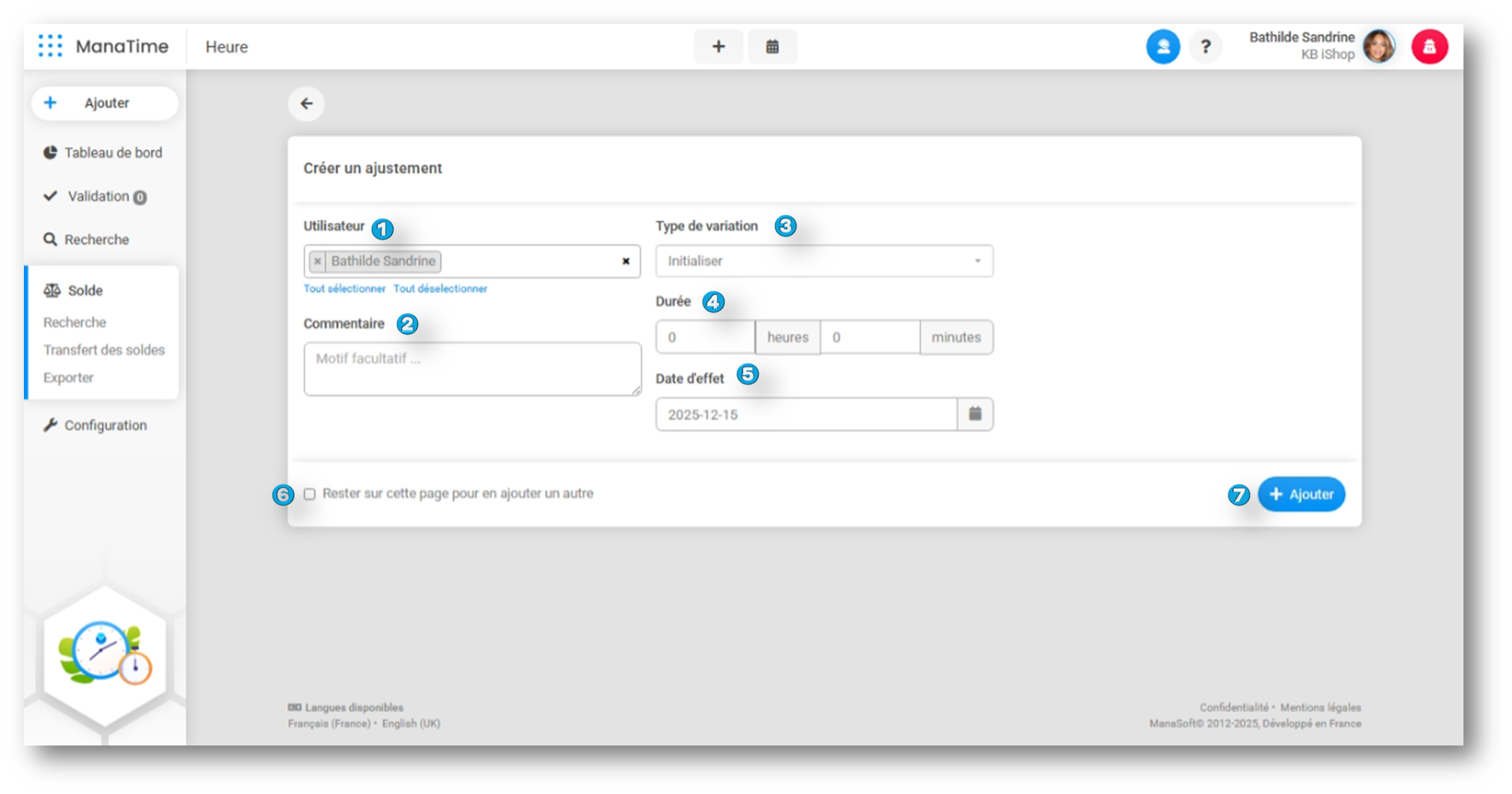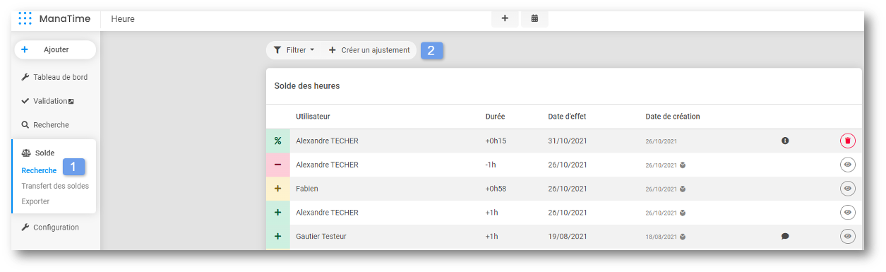 Dans ManaTime, l'ajout d'un ajustement de solde peut être nécessaire lors de la création d'un utilisateur, il peut être également utilisé pour solder et payer les heures d'un salarié par exemple.