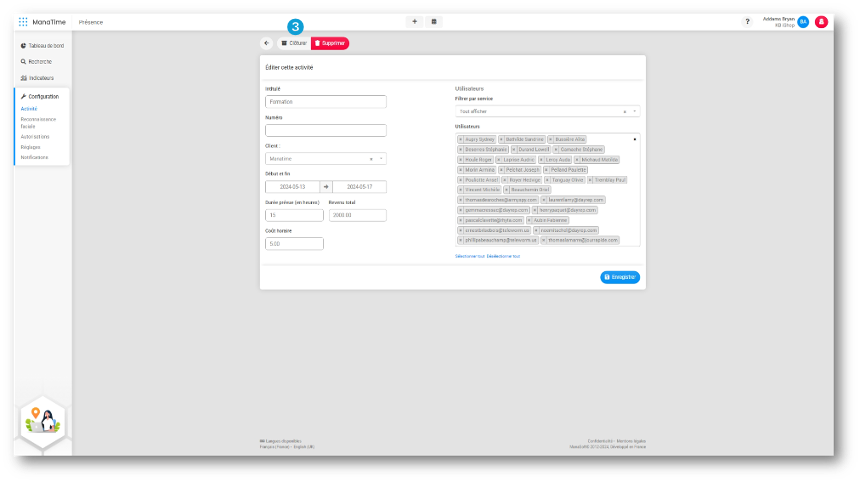Vous souhaitez éditer une activité pour votre enseigne sur votre logiciel ManaTime ? Rien de plus simple ! Néanmoins, il vous faudra disposer d'un rôle RH afin d'accéder à cette fonctionnalité. Dirigez-vous dans le module Présence > Configuration > ...