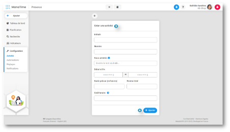 Remarque : Seuls les utilisateurs disposant du droit RH et Manager peuvent créer de nouvelles activités.
