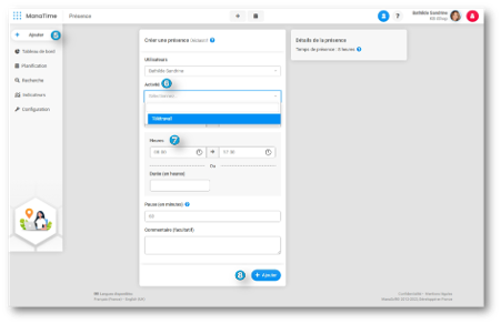 Sur ManaTime, il est possible de déclarer une mission ou un projet directement depuis le module Présence.