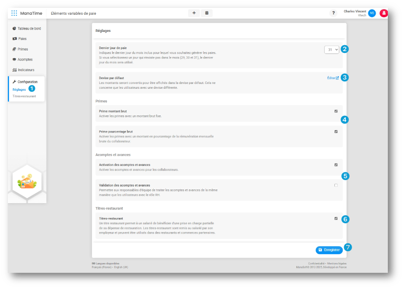 Pour assurer un calcul précis de la paie, il est essentiel de configurer correctement le module EVP, notamment en activant ou désactivant les primes, titres restaurant, acomptes et avances.