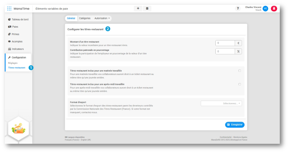- En activant cette option, l’onglet « Titres restaurant » apparaîtra dans le menu de gauche, vous permettant ainsi de gérer leur attribution après configuration.