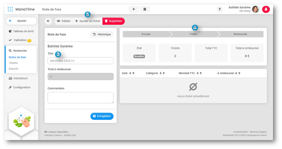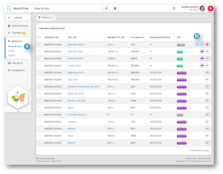 9. Une fois enregistré, dirigez-vous dans l'onglet Recherche / Notes de frais