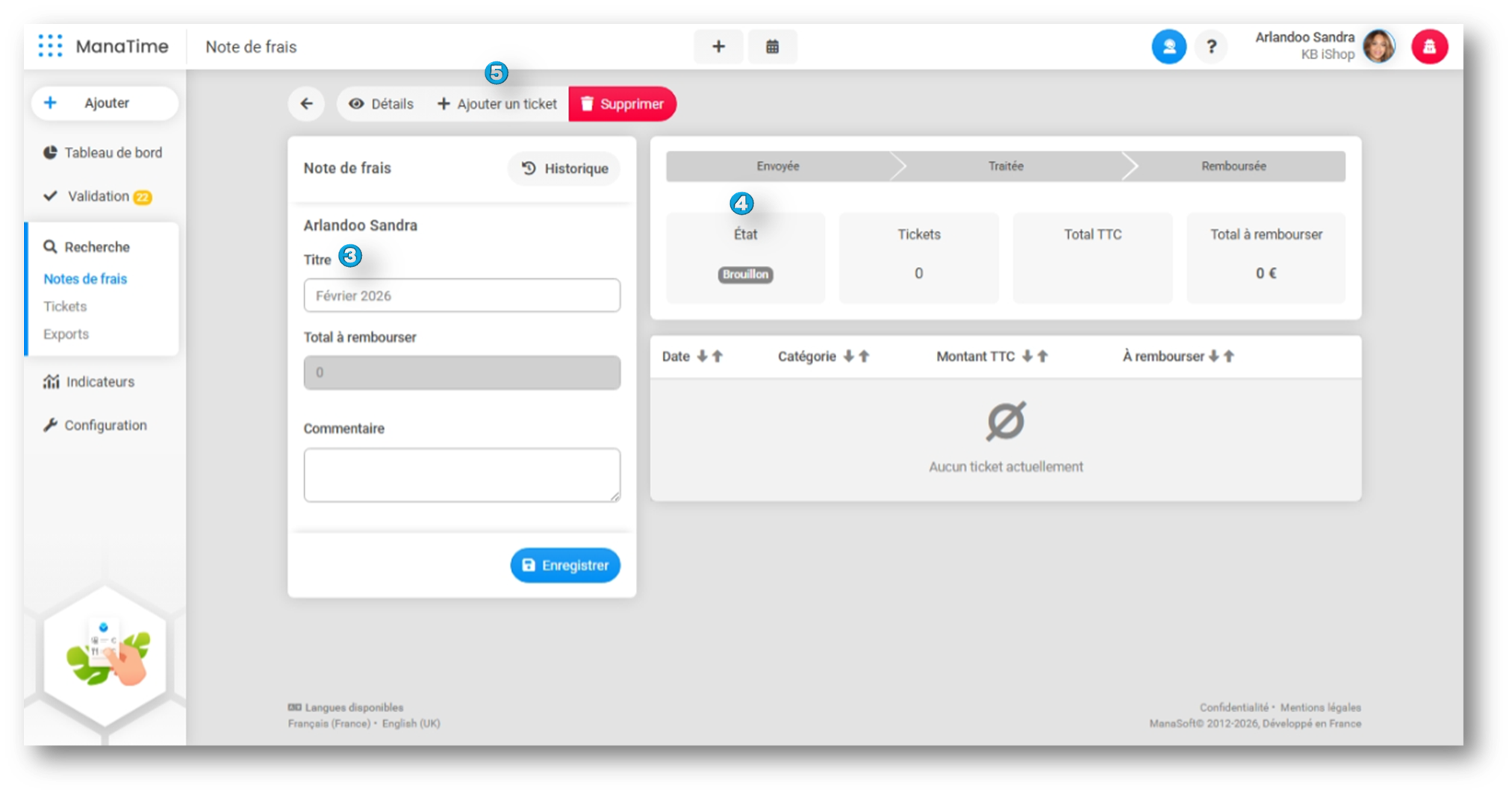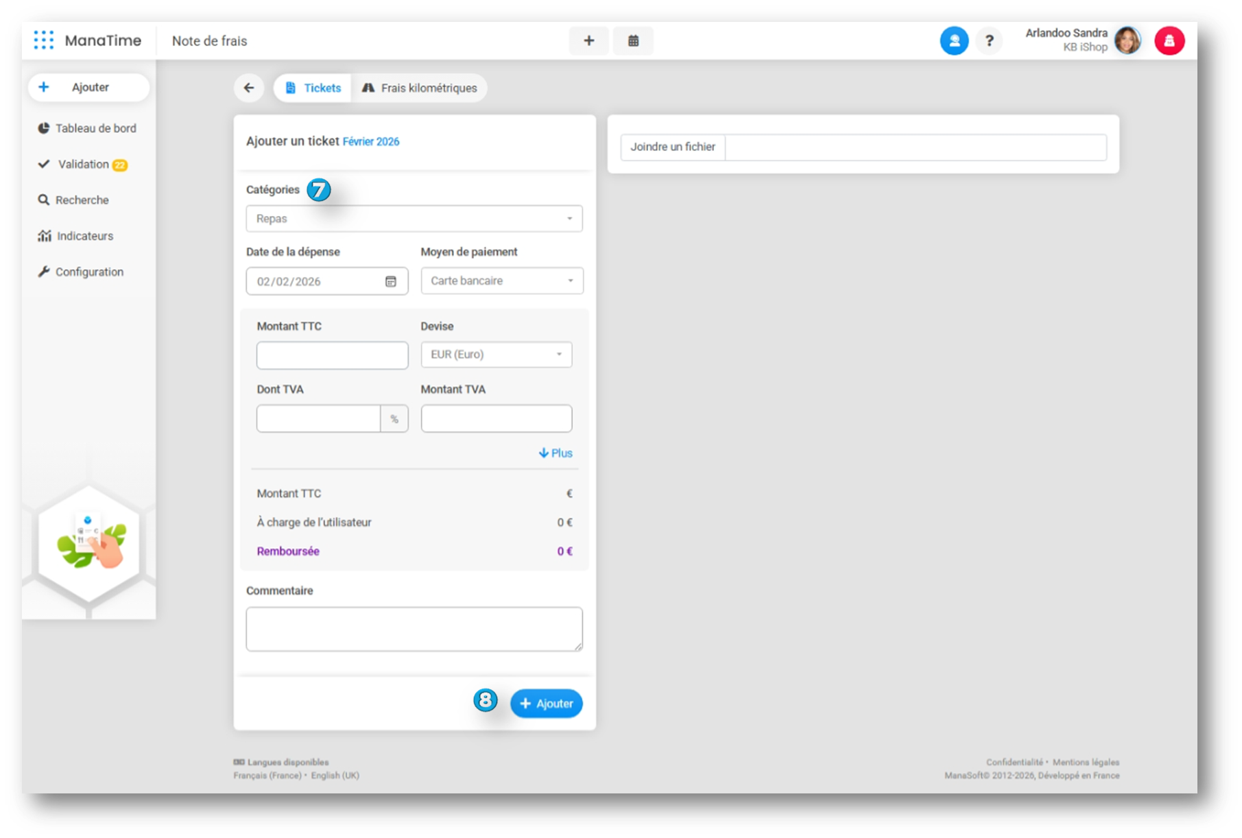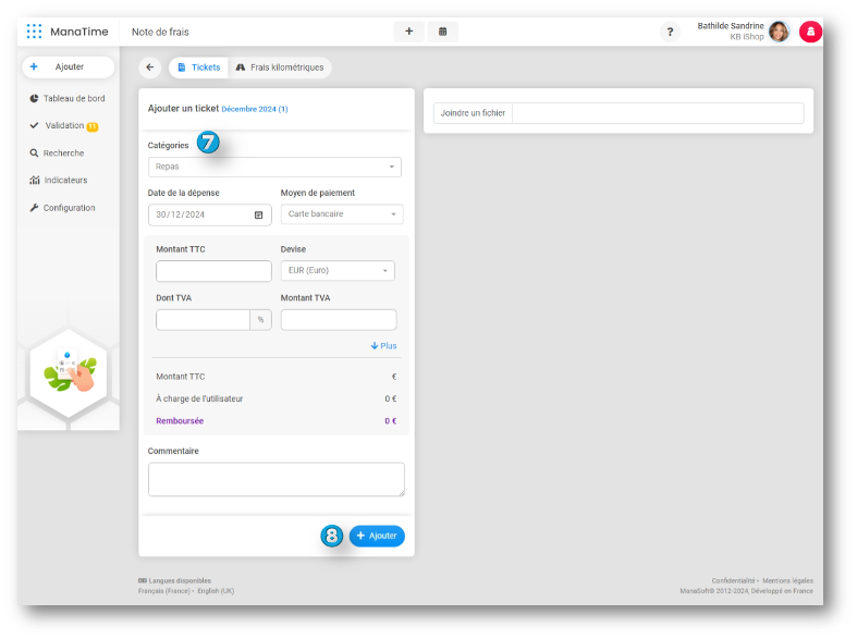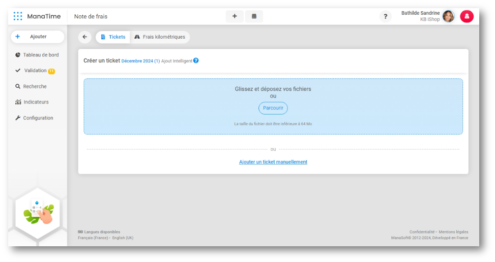 Sur ManaTime il est très simple de déposer une ou plusieurs notes de frais.