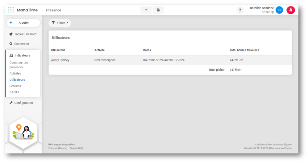 Utilisateurs : Cet outil vous permet d'analyser le temps passé par utilisateur sur les différentes activités.