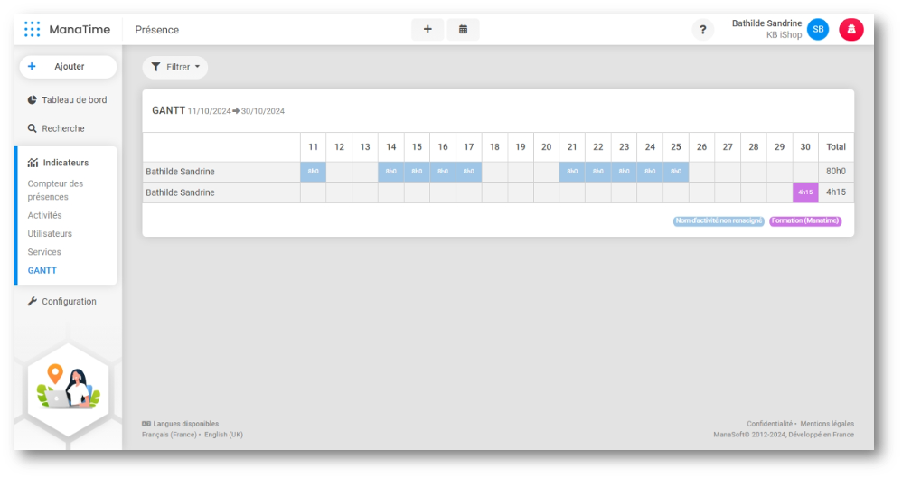 Le compteur de présence : est un indicateur clé du module Présence de Manatime. Il permet de suivre précisément les heures pointées par vos collaborateurs sur une période donnée. Cet outil offre une vision claire et synthétique des temps de présence.