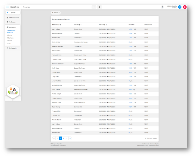 Le module Absence de ManaTime vous offre des indicateurs clairs et précis pour suivre et analyser les absences au sein de votre organisation. Ces outils vous permettent d’identifier les tendances, de mieux comprendre la gestion des congés, et ...