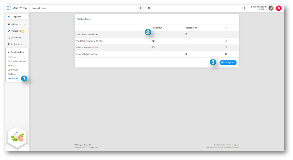 Sur ManaTime, vous pouvez recevoir des notifications pour vos notes de frais.