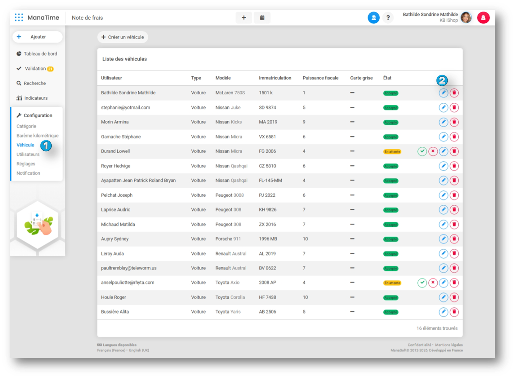 Sur ManaTime, vous avez la possibilité de modifier un ou plusieurs véhicules déjà créés par l'un de vos utilisateurs !