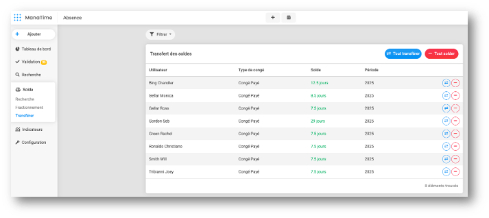Avec la nouvelle fonctionnalité de transfert de solde entre compteurs, Manatime simplifie la gestion de vos données. Vous pouvez désormais déplacer des reliquats entre différents compteurs en quelques clics tout en précisant le nombre exact que vous ...