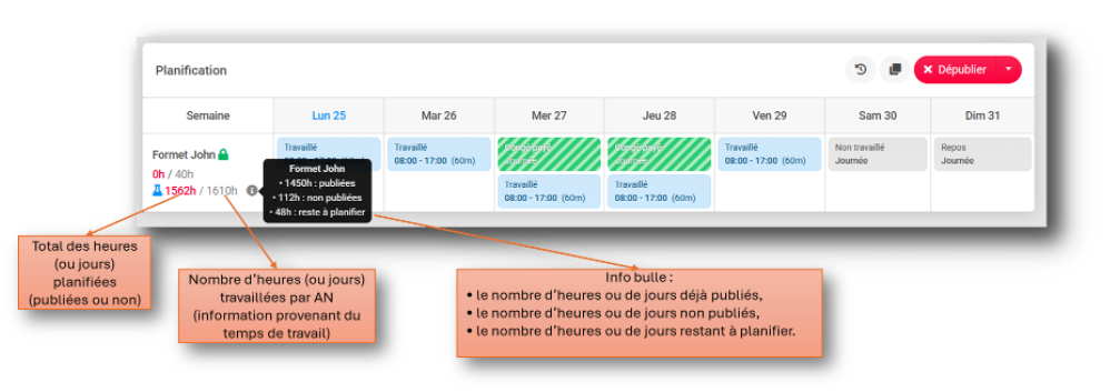 Pour l’instant, l’indicateur est disponible sur la planification hebdomadaire.