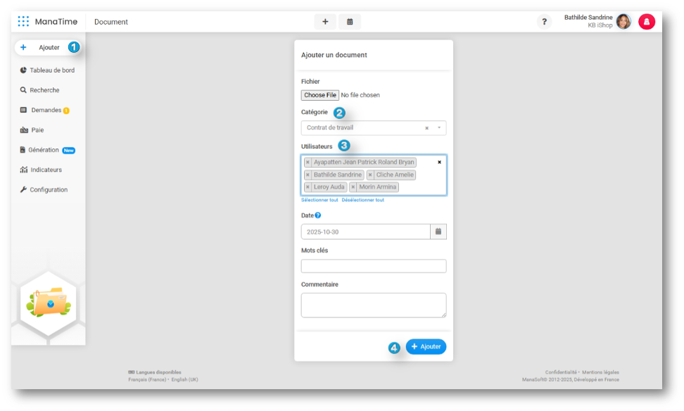 Oui, sur ManaTime, vous pouvez centraliser et partager vos documents RH (contrats de travail, avenants, attestations, etc.) directement avec vos salariés.