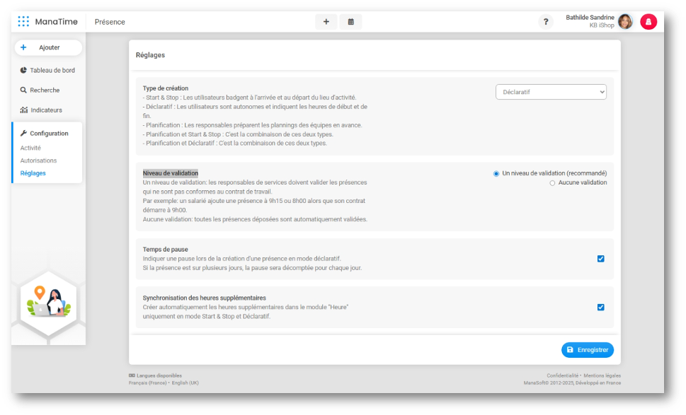 Certaines déclarations de présence peuvent apparaître avec le statut « à valider », en fonction des règles de gestion configurées dans votre environnement ManaTime.