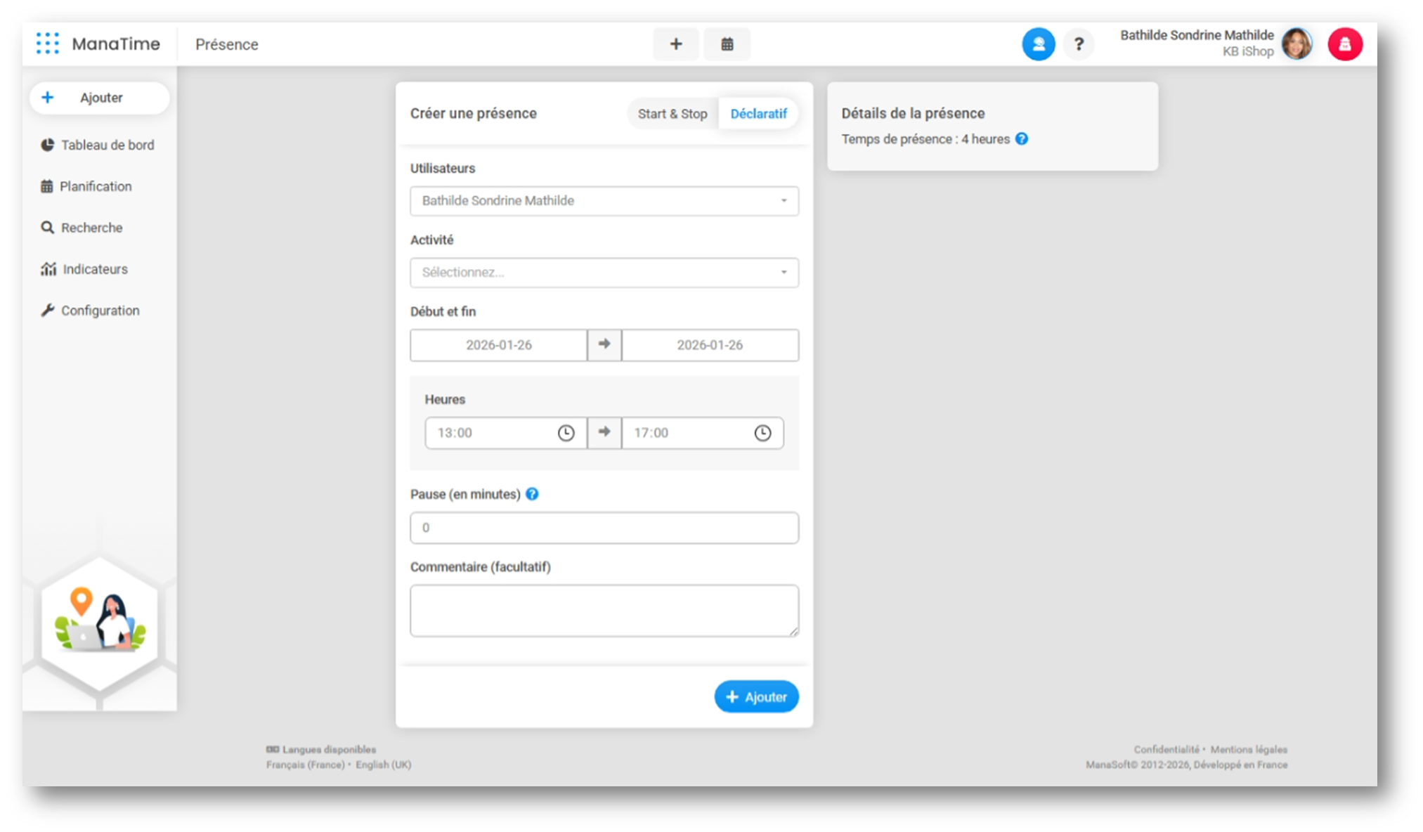 Une nouvelle fonctionnalité est désormais disponible dans le module Présence lorsque la configuration est en Mode Start & Stop ou Planification et Start & Stop.