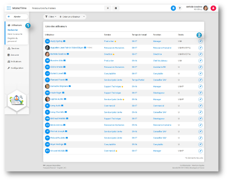 Sur ManaTime, 2 choix s'offrent à vous. Si vous ne souhaitez plus conserver les données de l'utilisateur (Absences déposées, soldes, présence, Heures Supplémentaires, note de frais…) Vous pouvez alors supprimer son profil. Dirigez-vous dans le module ...