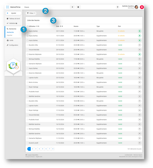 Sur ManaTime, en tant que RH, vous avez la possibilité de rechercher l'ensemble des heures déposées sur la plateforme depuis la création de cette dernière. *