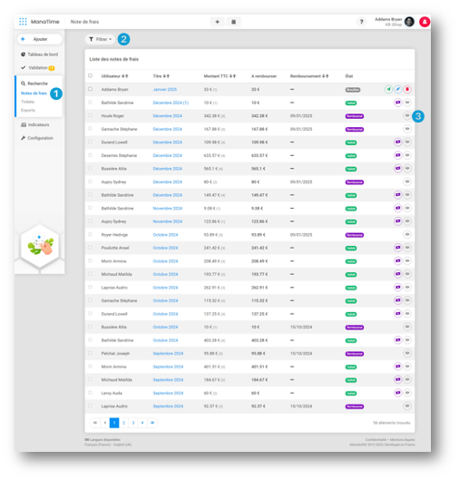 - * Que ce soient les notes de frais acceptées, refusées, annulées.