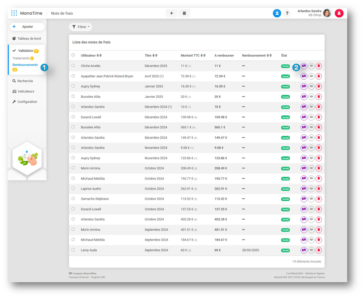 - Dirigez-vous dans le module Note de Frais > Validation > Remboursements
