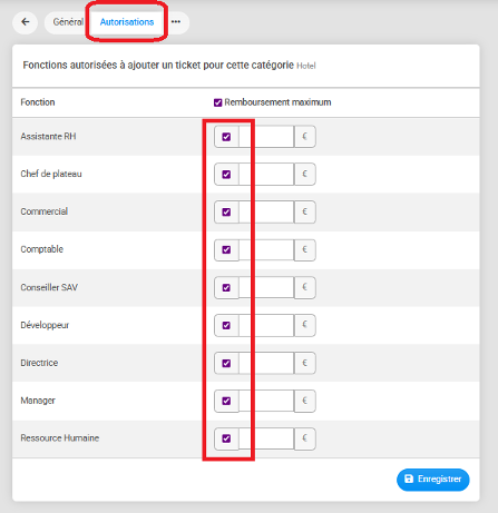 Son profil dispose bien de l’accès au module en cochant son nom ici : Utilisateurs. La fonction associée à l’utilisateur est correctement sélectionnée dans la configuration de chaque catégorie de note de frais. Cela est simple, il vous suffira de vous rendre dans la Liste des catégories, éditer la catégorie note de frais pour laquelle l’utilisateur n’arrive pas à faire sa déclaration et cochez la fonction concernée :